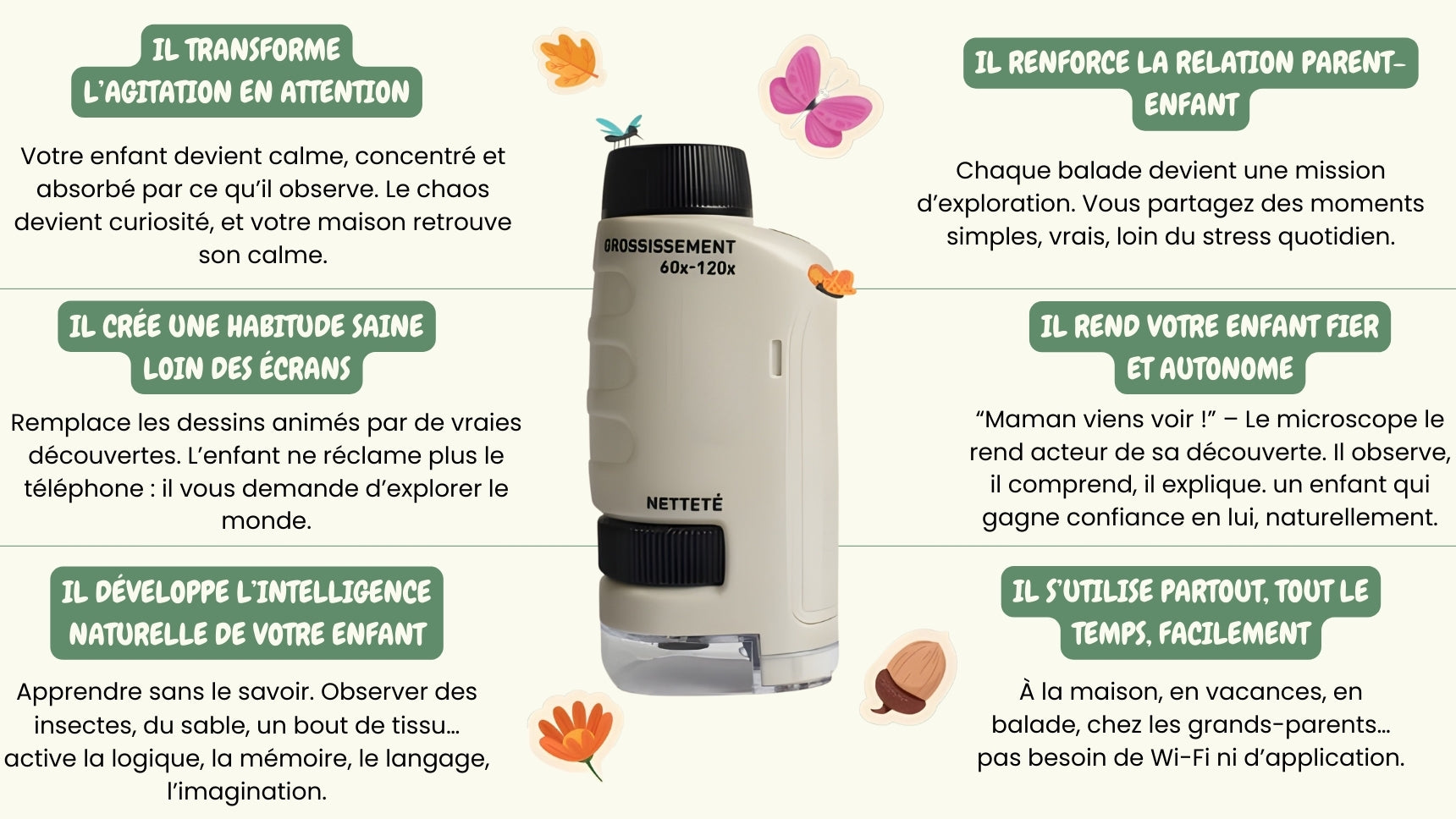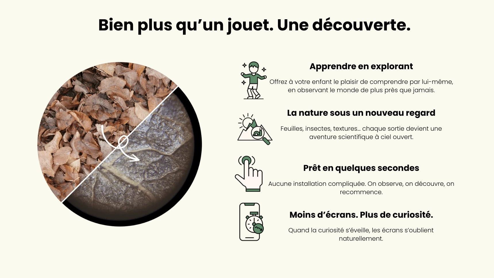 Il suffit de le poser sur ce que lâenfant veut observer et, en quelques secondes, les dĂ©tails apparaissent comme par magie.